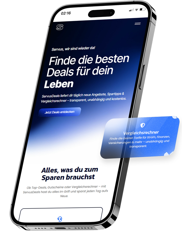ServusDeals liefert dir täglich neue Angebote, Spartipps & Vergleichsrechner – transparent, unabhängig und kostenlos.