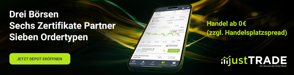 Mit Partnerbörsen wie LS Exchange, Quotrix oder gettex sowie starken Emittenten wie Citi, UBS oder Société Générale steht justTRADE für Transparenz, Sicherheit und attraktive Konditionen.